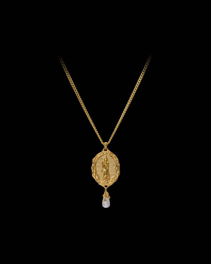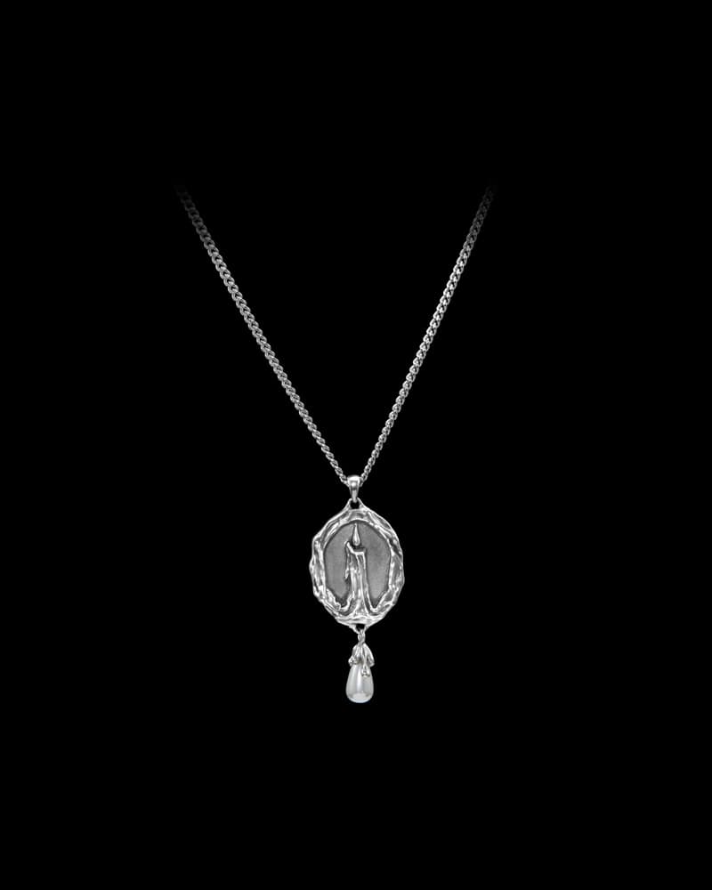 A relic of the occult, the Burning Candle Necklace channels the mystique of midnight séances and whispered traditions. Drawn from Maria’s Cabinet of Enchanted Relics, it evokes the charged stillness of a candlelit room, where spirits linger, time slips, and shadows speak.